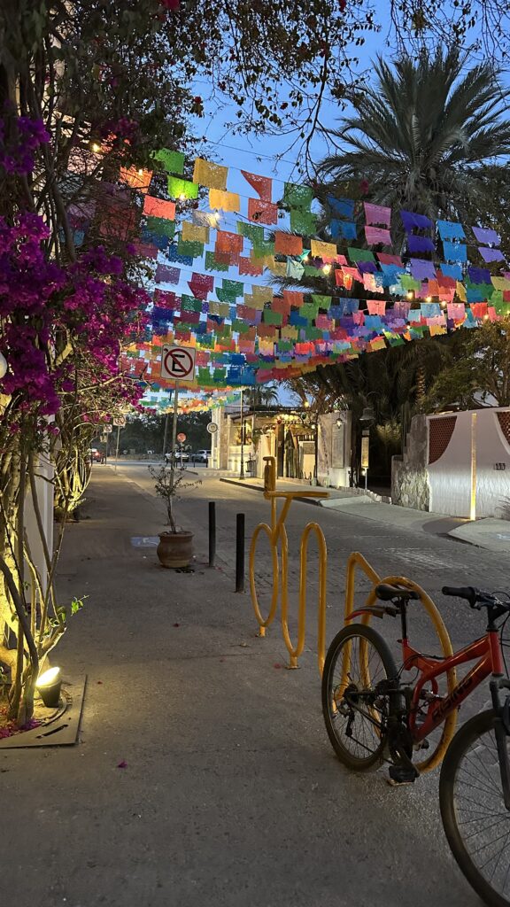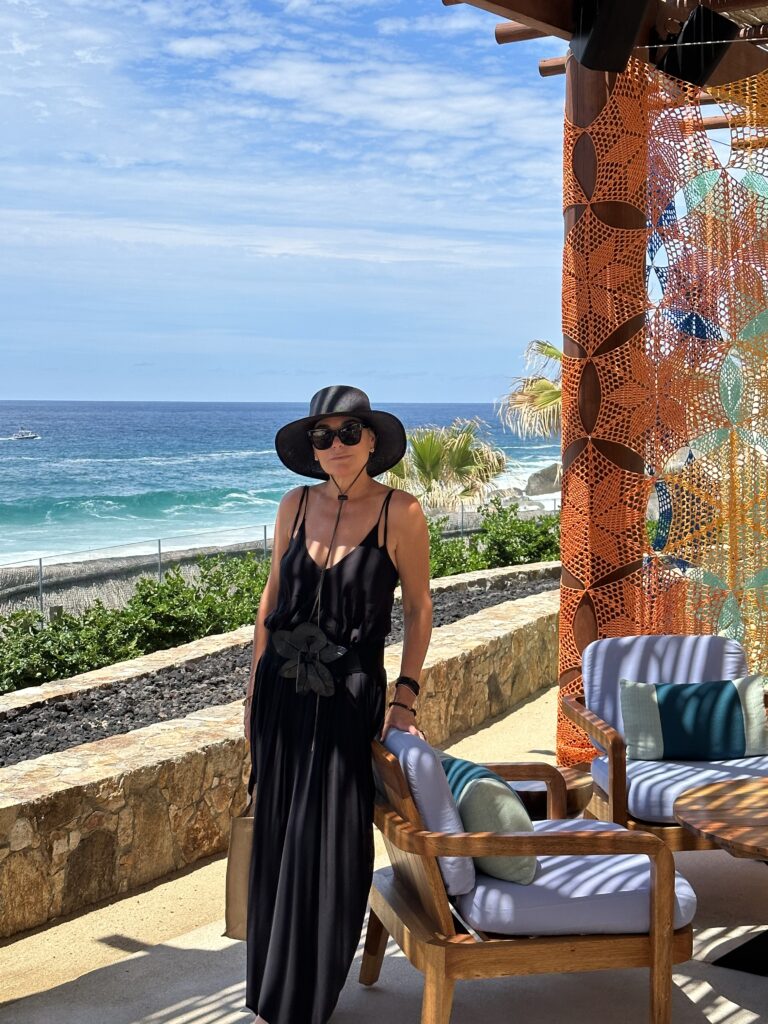Whenever Adam and I travel, we make it a point to visit local real estate offices and connect with the area’s agents. Exploring the local market is always part of our itinerary—it’s how we learn about the community and tour the properties firsthand. On many trips, we come across a Corcoran office, like the one here in San Jose del Cabo, where I even recorded an episode of my podcast. I stood for the entire hour just to capture the stunning artwork behind me on camera! San Jose is absolutely beautiful—I can’t wait to return.